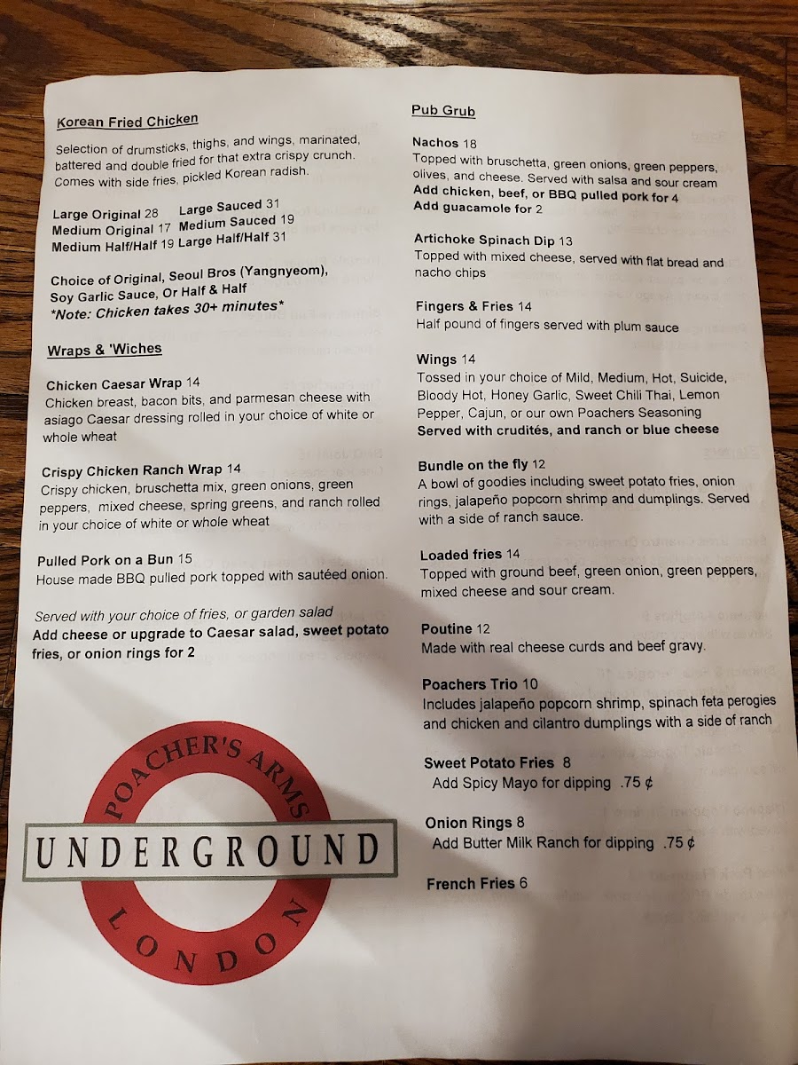 Welcome to Poacher's Arms, a beloved pub located at 171 Queens Ave, London, ON. This lively venue enchants visitors with its vibrant atmosphere, rich history, and diverse menu. Patrons rave about both the food and drink selection, noting the standout Korean Fried Chicken as a must-try, praised for its authentic taste and generous serving.